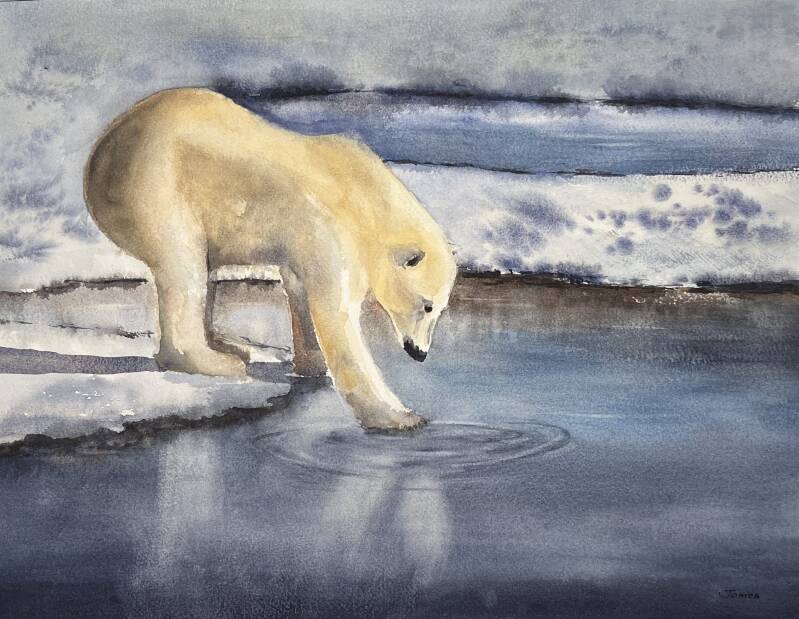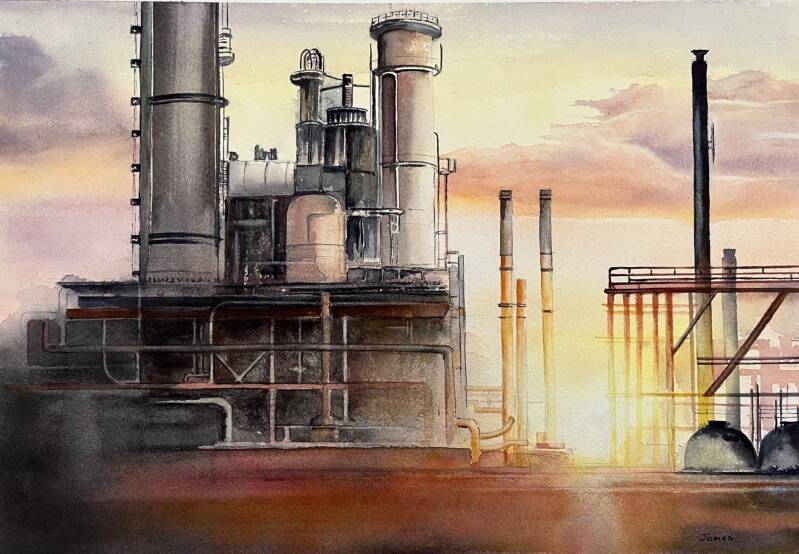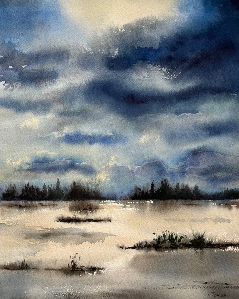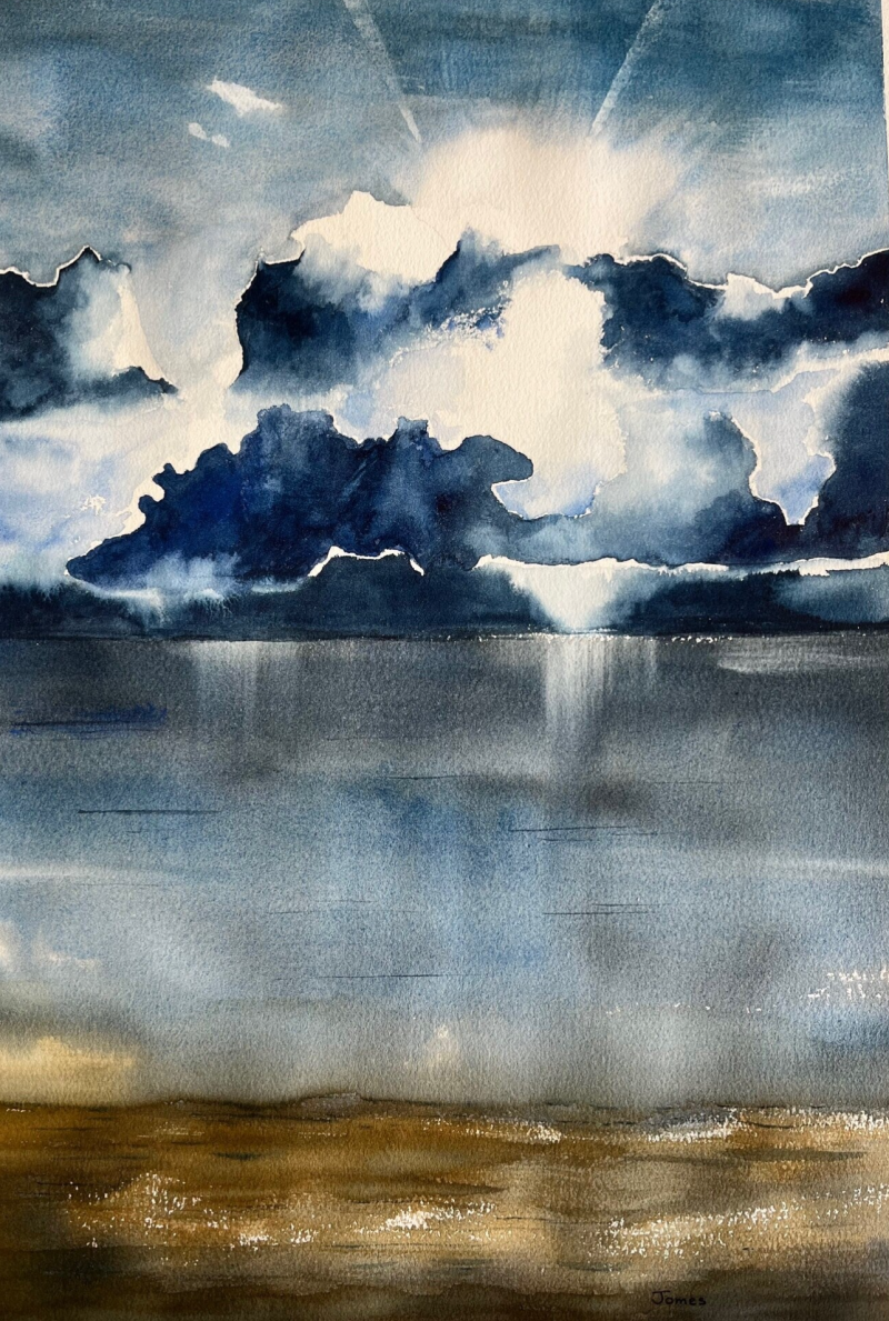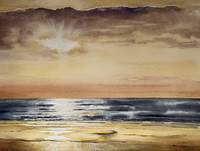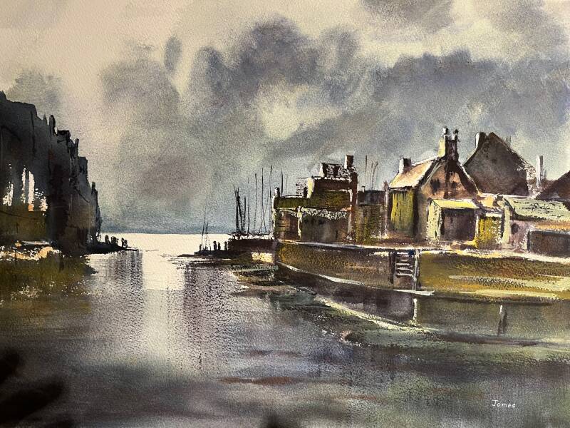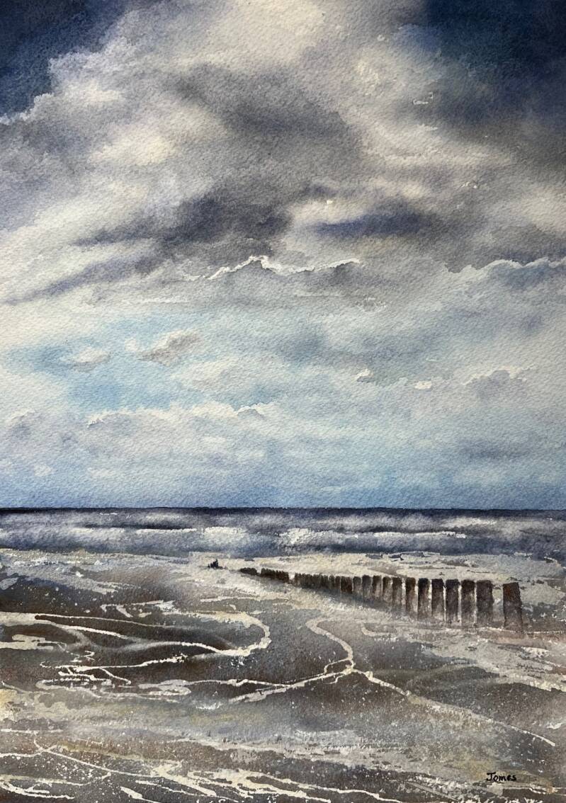 Aquarel gemaakt tijdens de workshop "licht in de branding" van Paul Van Cleven, in Brugge, op 14 en 15 januari 2024.